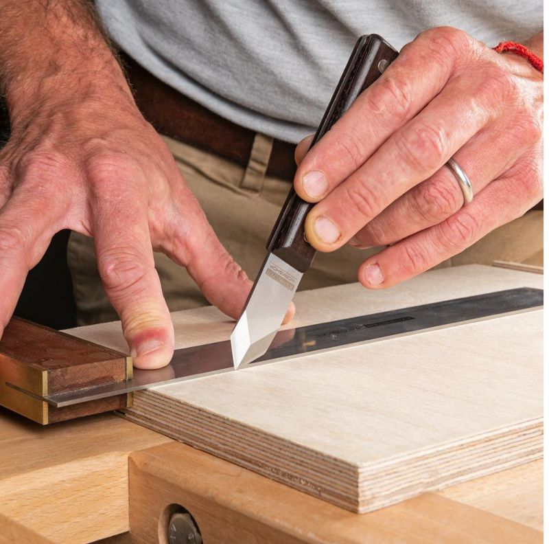 - The cut line forms a register for a chisel or saw resulting in work that is more accurate.