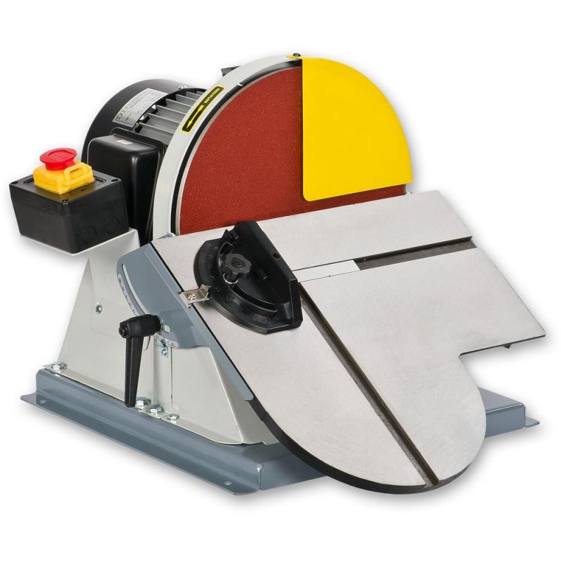 - The AP305BDS has a 305mm diameter sanding disc fitted with a quadrant guard. The large cast iron work table features two mitre fence slots to 90° to each other, giving many options for sanding end grain or adjusting mitre joints. The table tilts to 45°, with scales on the quadrant supports. Dust extraction is via a well-positioned 63mm diameter outlet.