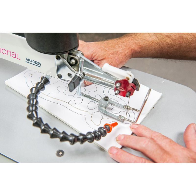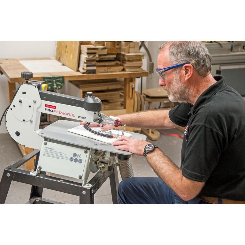- This 406mm throat scroll saw includes an innovative design, quality construction and comes with some unique features.
