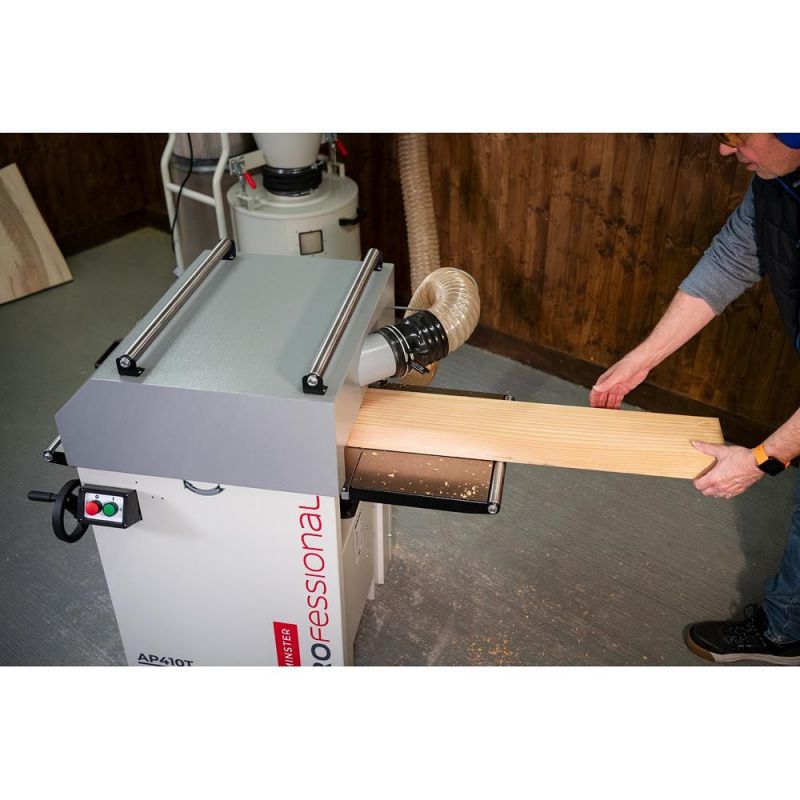 - The Axminster Professional AP410T Thicknesser is designed for users who demand accuracy, power, and a flawless surface finish.