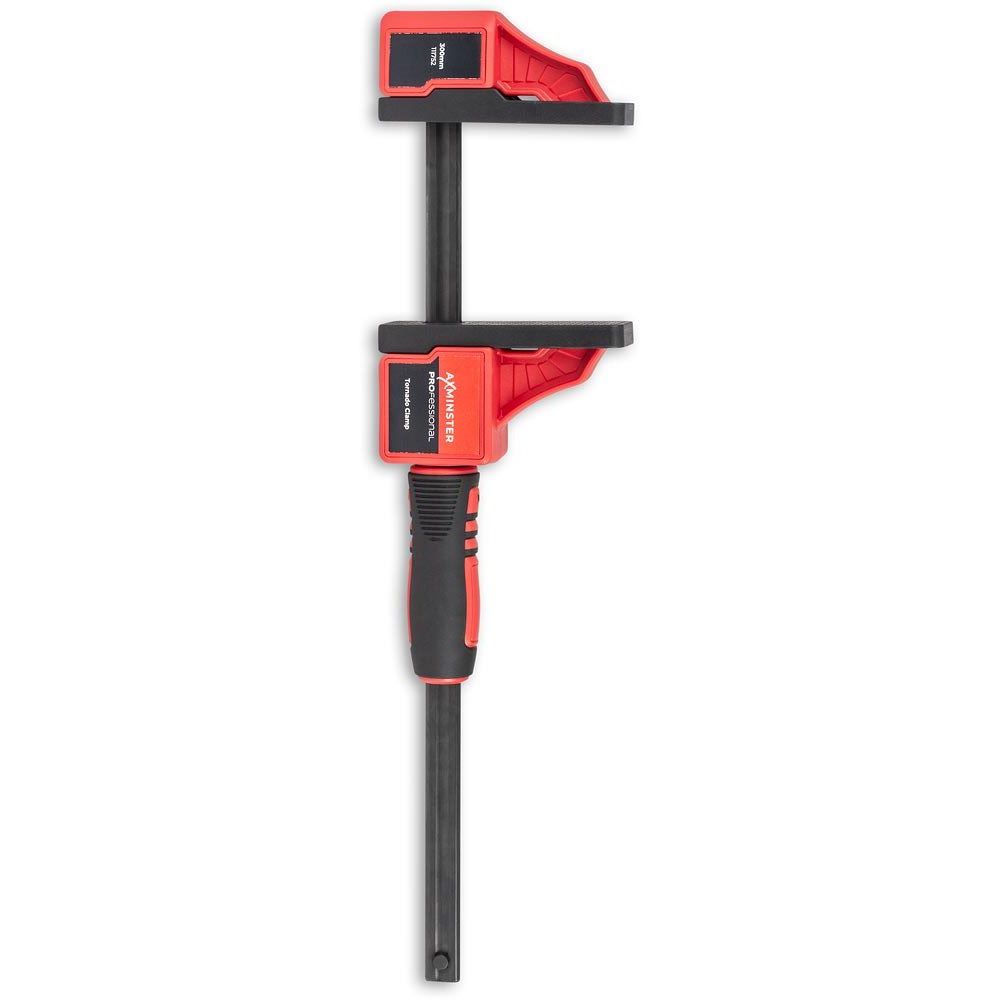 - The Axminster Professional Tornado Clamp is perfect for woodworkers and DIY enthusiasts who need a reliable and versatile clamping solution. Suitable for a wide range of applications, it offers unparalleled flexibility and ease of use. With its unique and innovative design, the clamp features a unique handle that works along the length of the bar, allowing for easy locking and tightening. This design provides a deeper reach than traditional "F"-style clamps, making it ideal for confined spaces and complex clamping tasks.