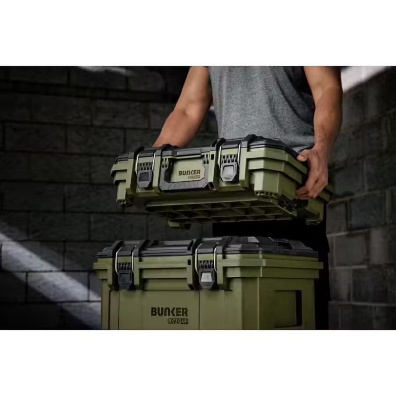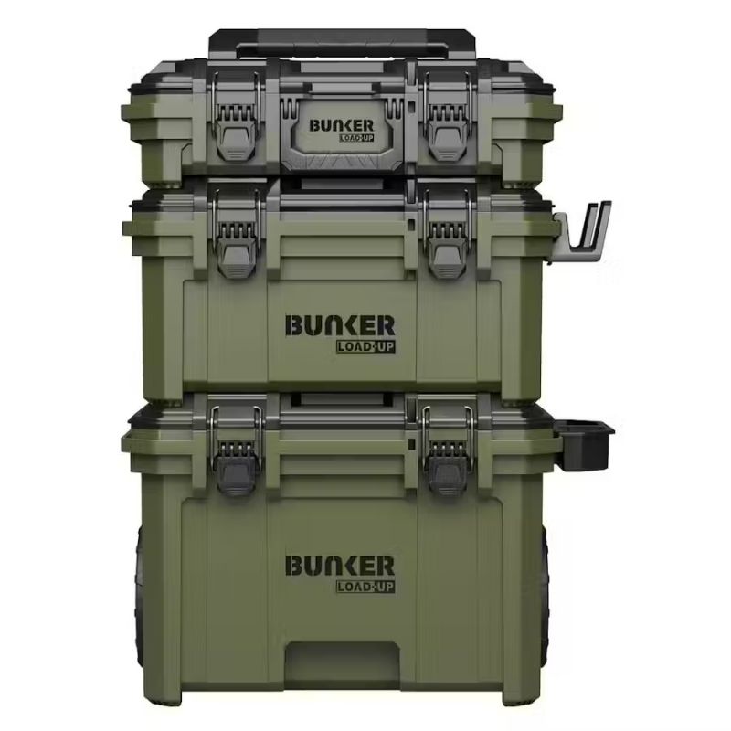 - The BUNKER Load-Up Stacking Storage System offers the ultimate solution for organising, transporting, and securing your tools. Its modular design enables you to combine tool boxes, organisers and crates to maximise your storage capacity and keep everything in its place.