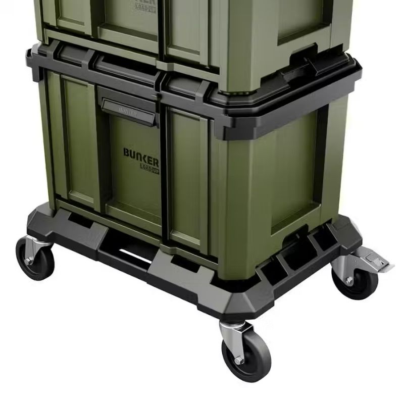 - This dolly enables stacking any configuration of BUNKER Load-Up on top, creating a mobile garage tool storage solution.