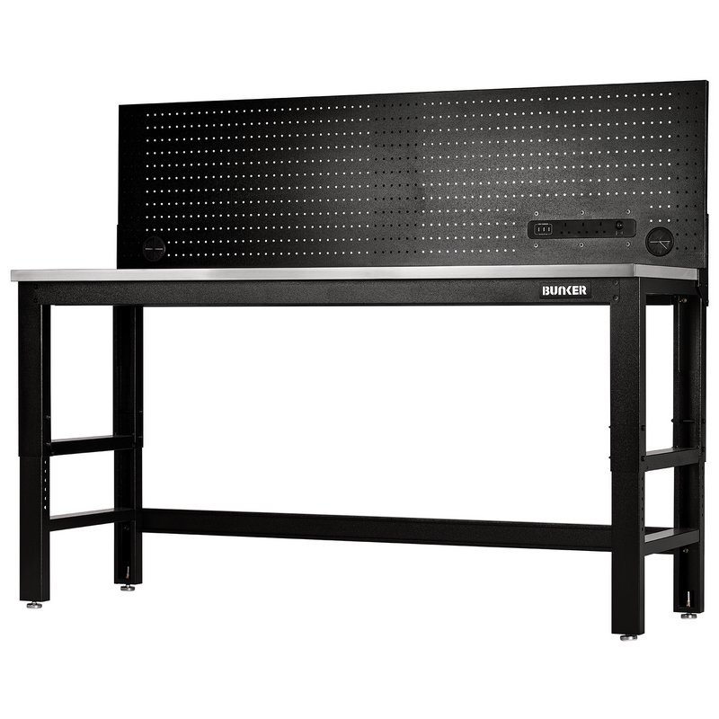 BUNKER Workbench with Stainless Steel Worktop and Power Pegboard, 1830mm
