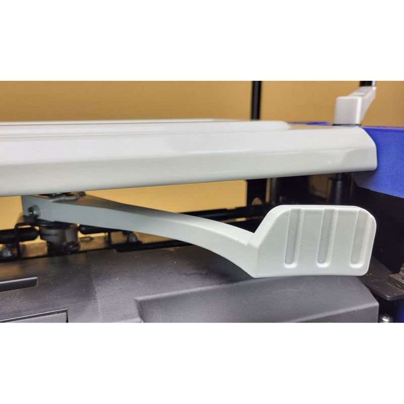 - When not in use both the infeed and outfeed tables fold up to make a more compact unit and the solid comfortable lifting handles aid convenient storage solutions.