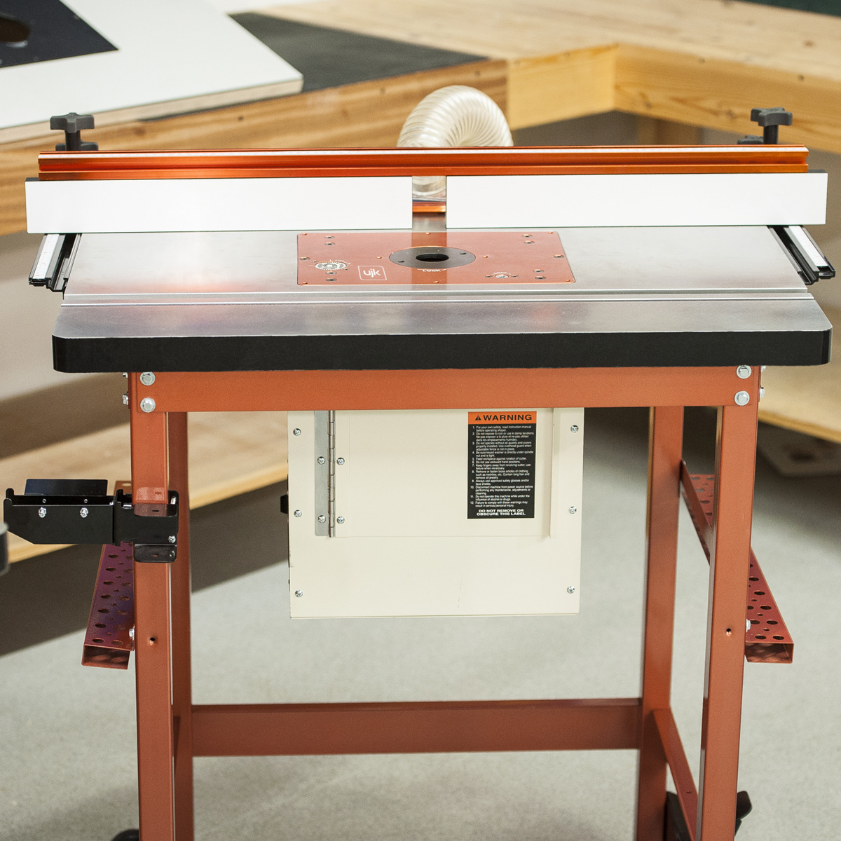Dust extraction from a router table can be difficult and for it to work effectively it needs to extract from both above and below the table. Designed to fit the UJK Pro and Compact router tables this device fits below the table top enclosing the router. It could also be fitted to other custom-made tables of your own design. The 100mm diameter outlet on the back also incorporates a 62mm inlet and hose which enables extraction from both above and below the table simultaneously. An access door is provided on the front with a magnetic closure enabling access to your router for adjustments if required. Measures 330 x 260 x 350mm high with an access aperture of 225 x 170mm.