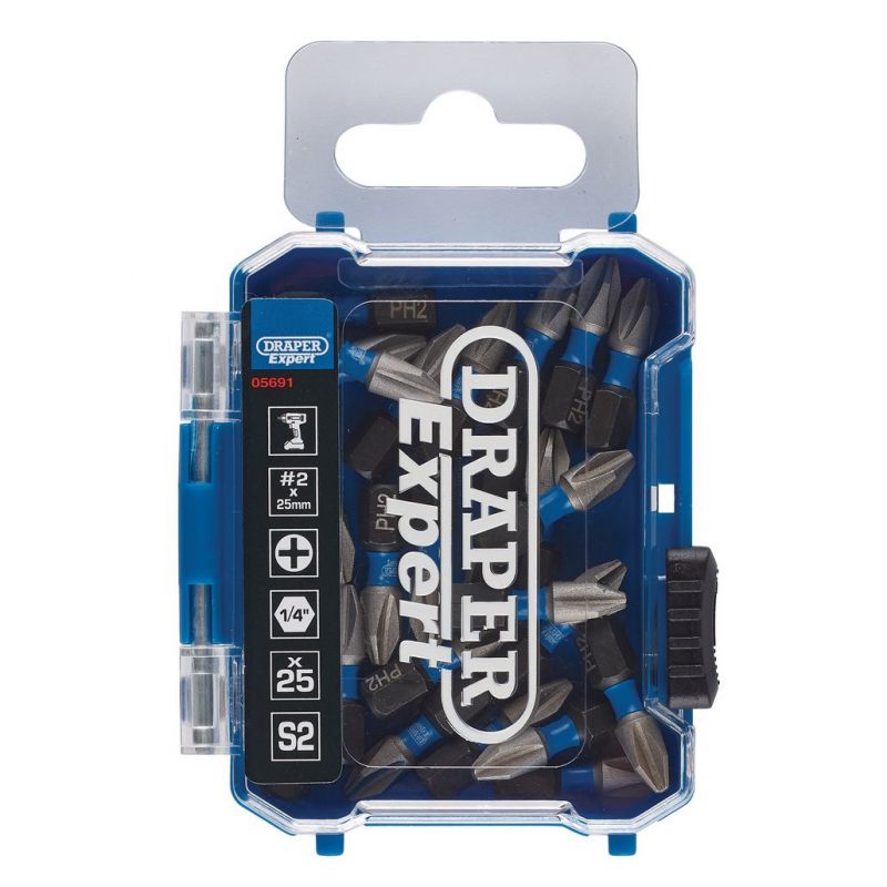 Draper Expert Cross Slot/PH Type Impact Screwdriver Bits, No.2 x 25mm, 1/4" Hex (Pack of 25) - 05691