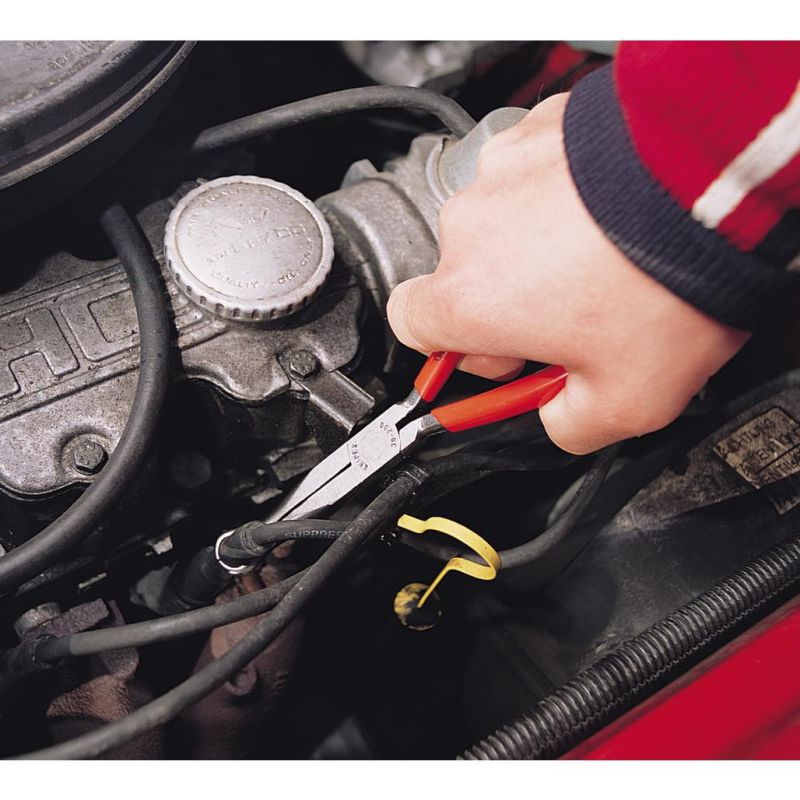 - Professional Quality, manufactured from vanadium electric steel, oil hardened and tempered. Smoothly ground head with angled grabber jaws ideal for gripping small hoses, clamps, spark plug covers and other small components.