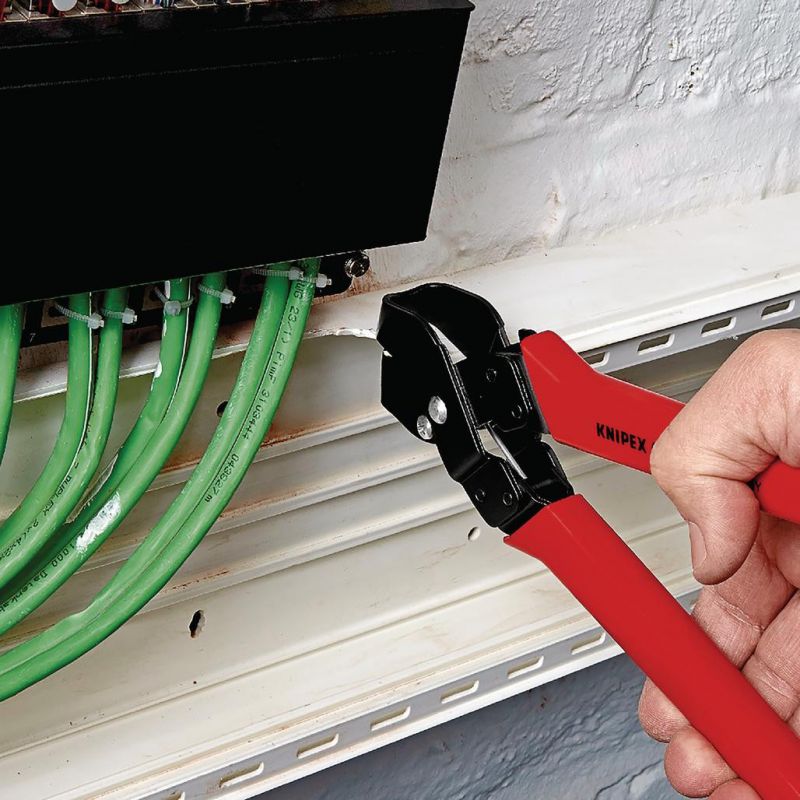 - Special pliers for notching recesses into plastic ledges and plastic casings for electric and plumbing installation.