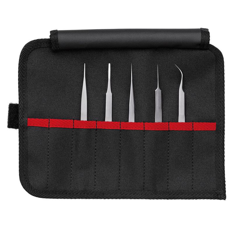 - Five high-quality sets of tweezers: Precision Tweezers, Universal Tweezers, SMD-, ESD, Plastic and Insulated Tweezers.