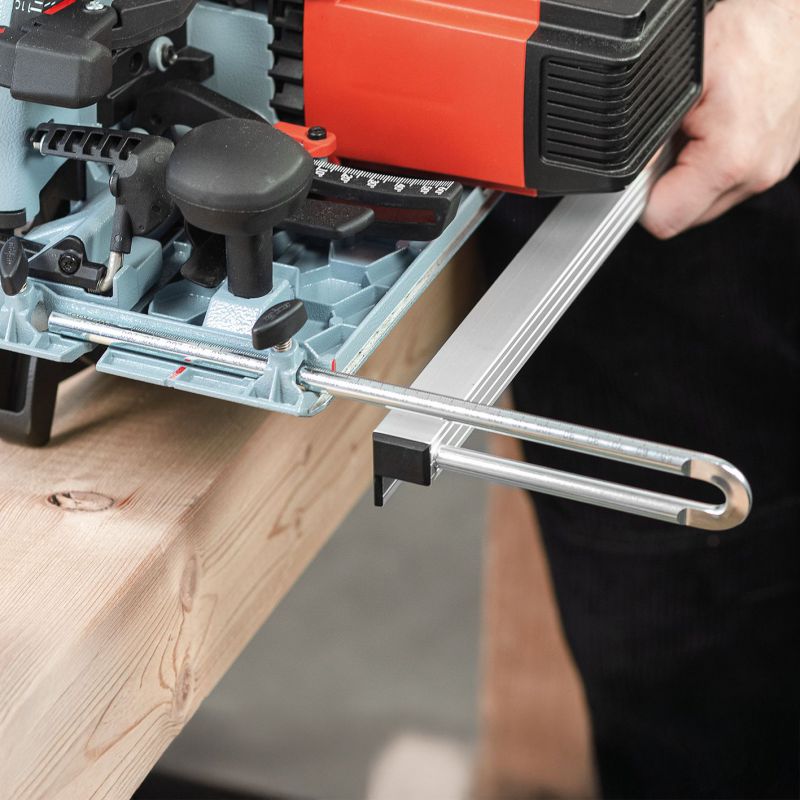 - With the groove in the base plate, the portable circular saw can be used as a cross-cutting system. The guide device is required for this.