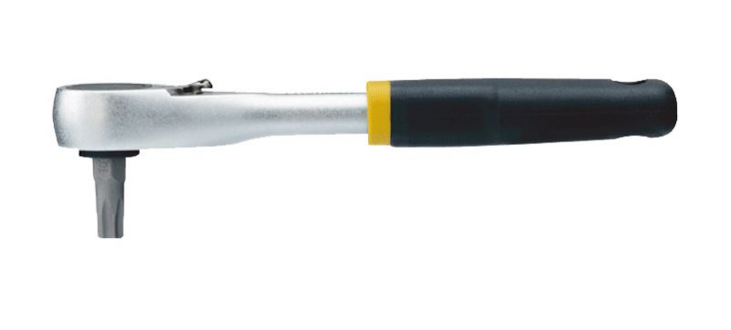 - Fine tooth drive: Several of the 72 teeth engage simultaneously for transmitting high torque. 1/4" bit holder with magnetic insert. Distance between reverse lever and bit end only 30mm. Made from CrV steel, double nickel plated with matt chrome plated finish. Grip of oil and acid-resistant TPR (Thermoplastic Rubber). With practical hole for hanging up.