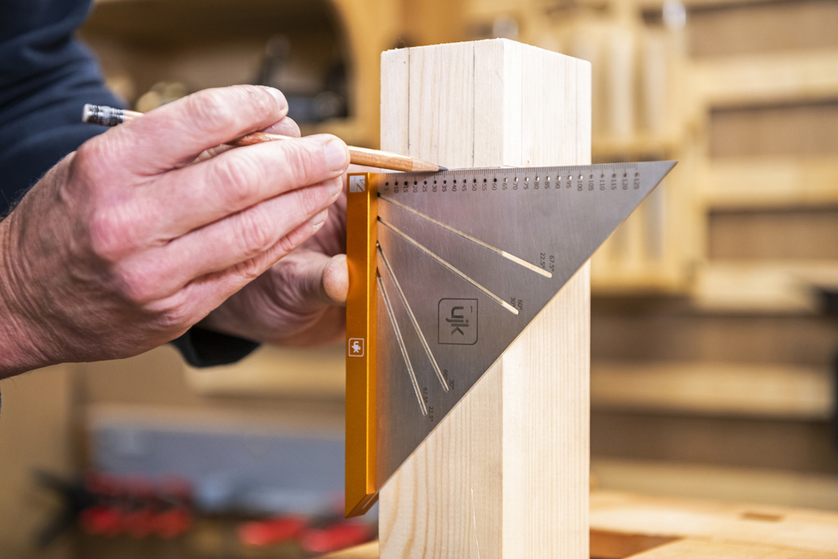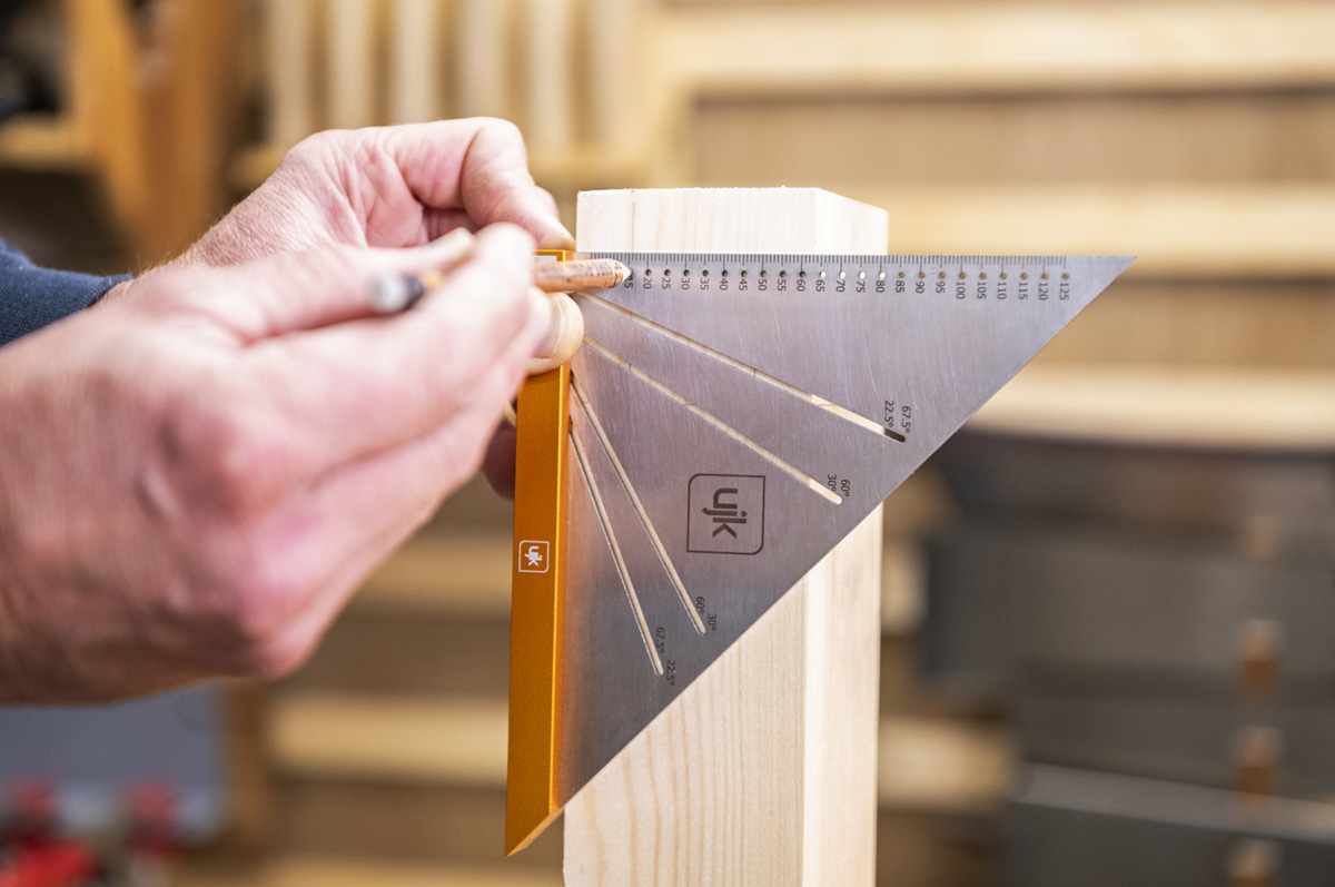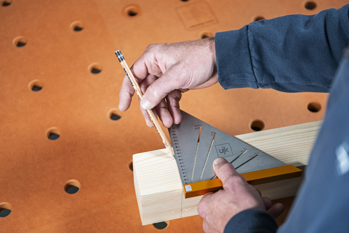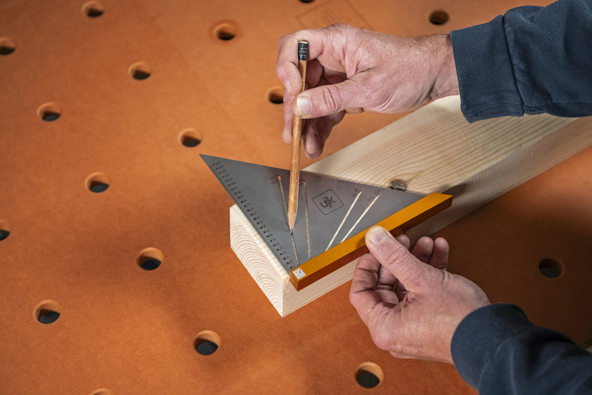 The UJK Compact Angle Square is your go-to tool for quick, accurate angle marking. British made from brushed stainless steel and aluminium, this durable and sleek square features 90°, 45°, 22.5°, 30°, 60°, and 67.5° angles for quick angle marking.