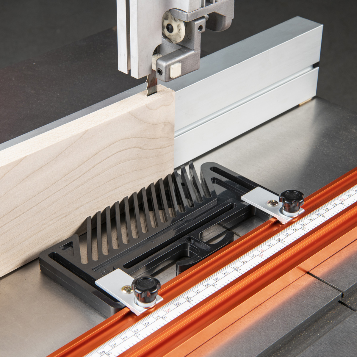 This featherboard, clamps into the T-slot of a UJK Progrip clamp. Once assembled you can fit the clamp along with the featherboard onto a router table, or bandsaw table. This arrangement allows you to position the featherboard in the best possible position to apply sufficient pressure on your workpiece, holding against the machine's fence. The UJK featherboard helps with accurate machinery and is a useful safety aid. N.B. Colour may vary.