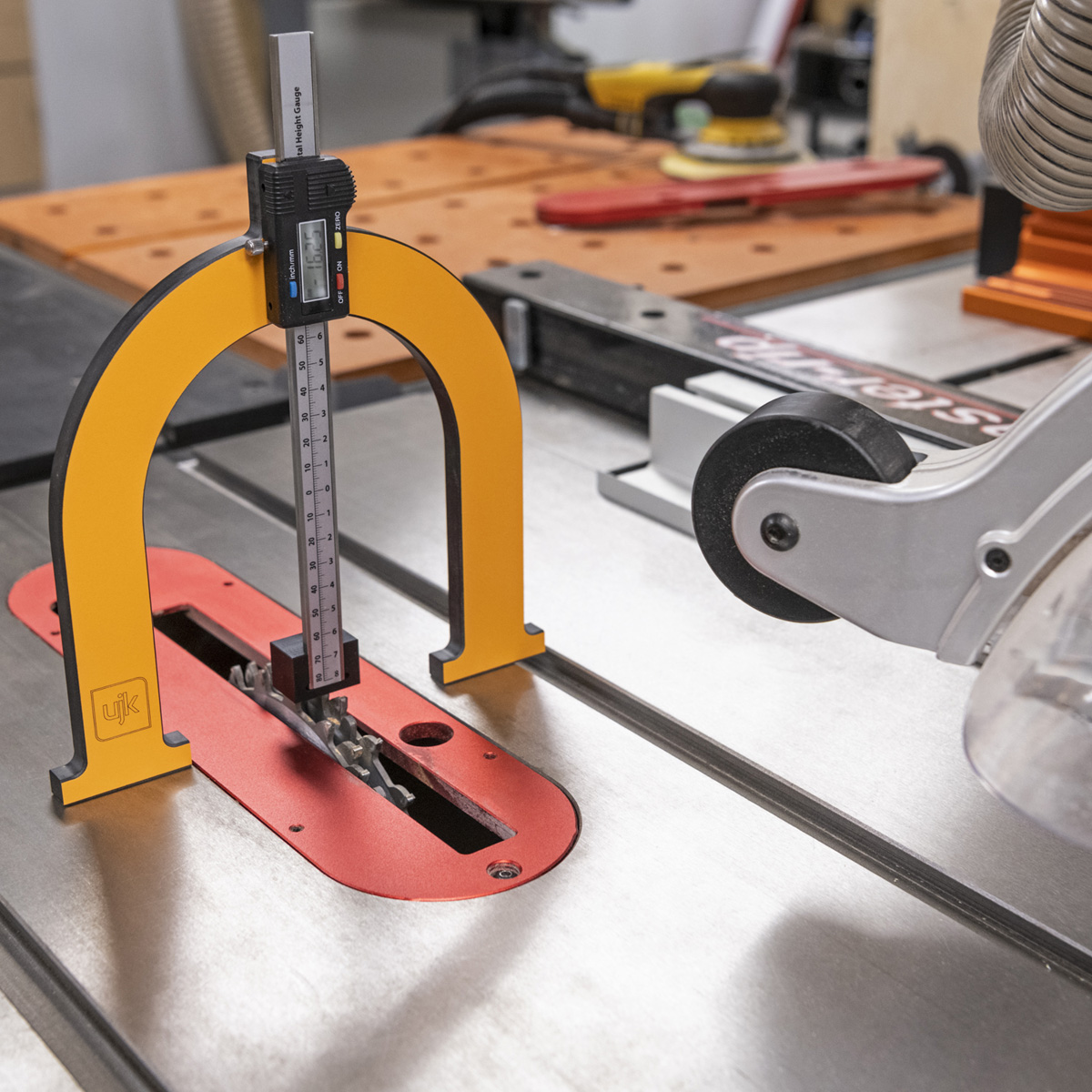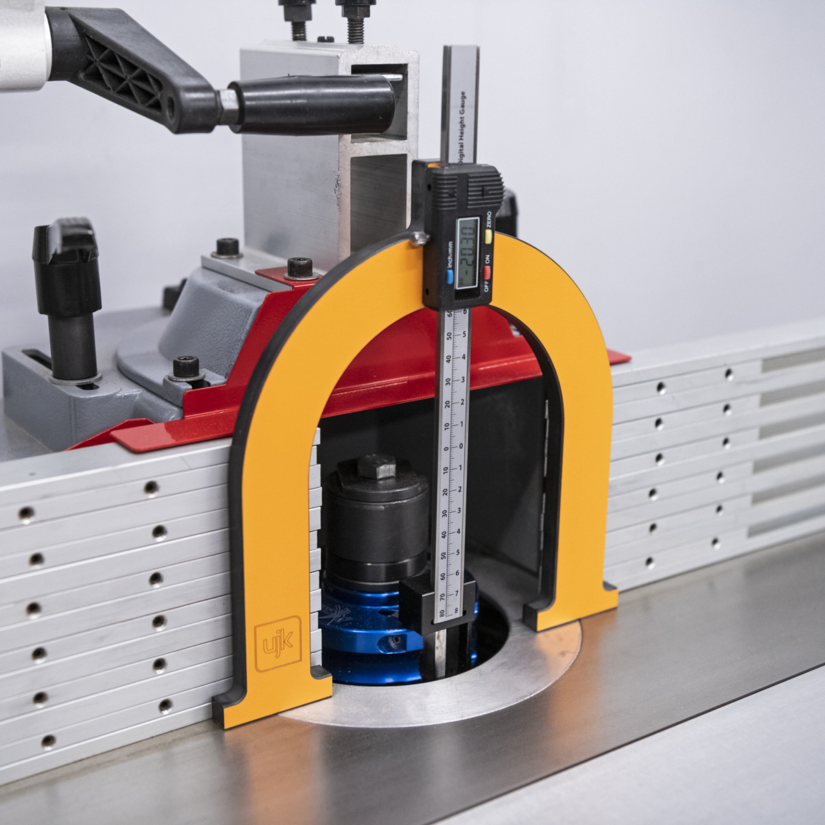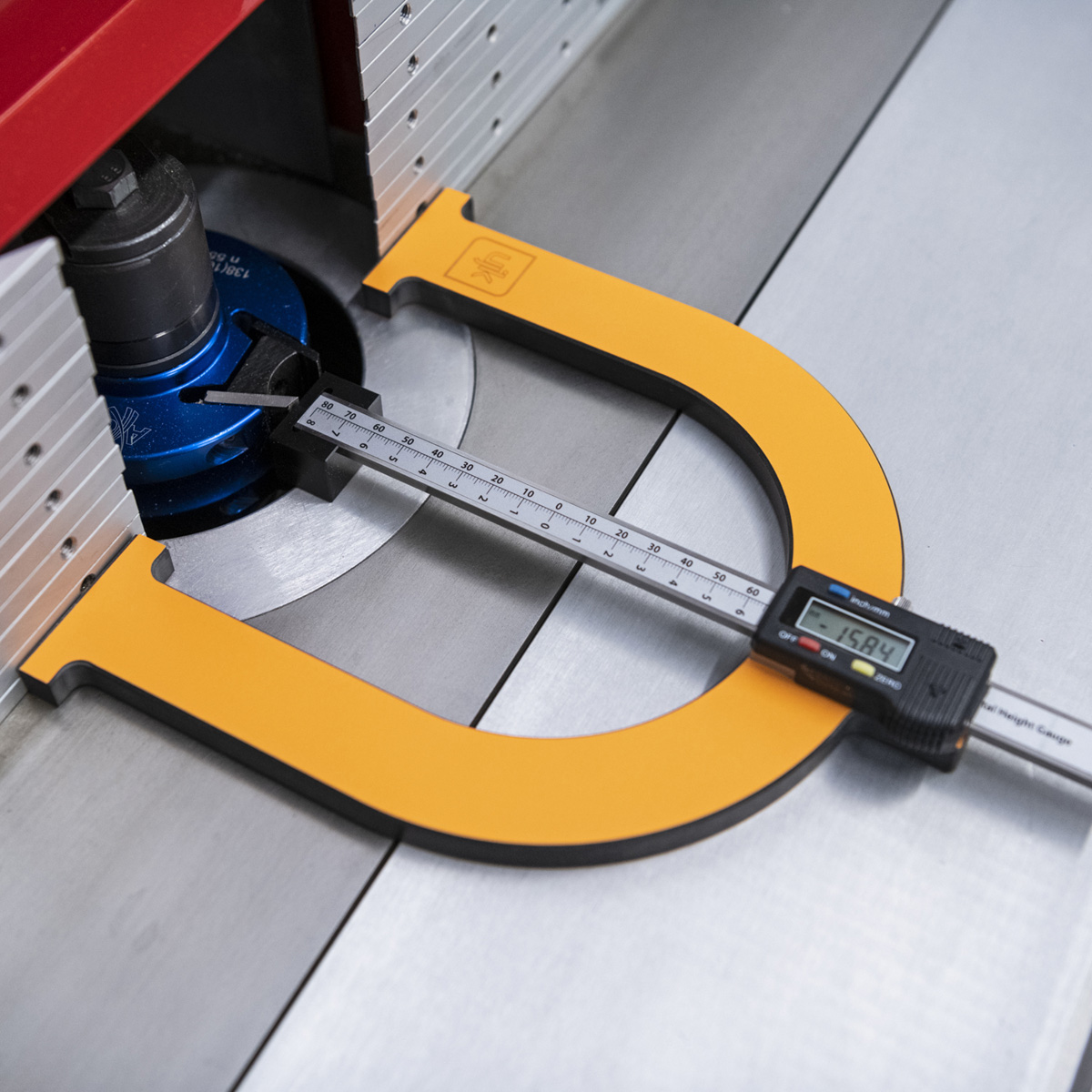 The UJK Large Digital Height Gauge is your go-to tool for accurately setting cutting depths up to 145 mm. Perfect for larger saws and router table fences, it combines speed, stability, and precision for confident results every time. Built from 12 mm thick CNC-machined phenolic, the gauge is durable and stable under normal workshop conditions. Its horseshoe shaped body measures 116 mm internally with a vertical range of 145 mm. The high-precision digital scale features a clear LCD display, offering measurements in both metric and imperial with a resolution of 0.01mm (0.001"). Zero the display at any point for relative adjustments, and measure vertically or horizontally with equal accuracy. With a measuring speed of 1.5 milliseconds, it’s faster than guessing with a ruler. Ideal for setting blade or cutter depth and aligning your router table fence.