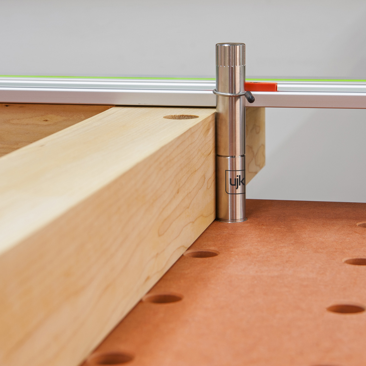 With a 120mm projection, it enables you to take full advantage of your plunge saw’s depth of cut, making it perfect for cutting large timbers or trenching. Simply twist the knurled top for a rock-solid fit in 20mm holes, compatible with UJK workbenches, Festool MFT/3, and self-built grid tables.