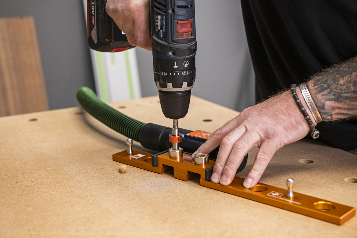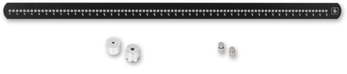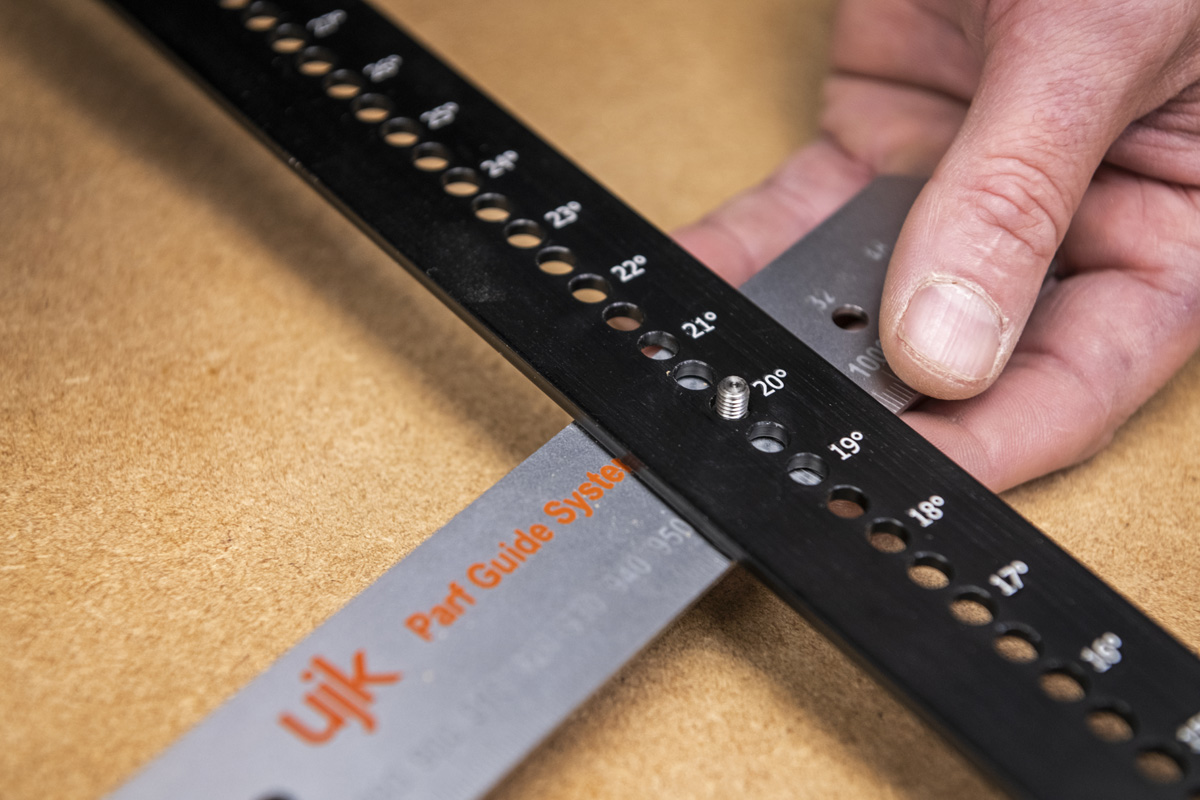 Introducing the UJK Parf Protractor, the ultimate addition to the UJK Parf MKII Guide System, designed for precision woodworking. This ingenious tool allows you to create a series of 20mm dog holes, ranging from 0-45° and 45-90°, with precise angle measurements in 0.5° increments. Varied marking holes provide the most precise angle at each point, eliminating any chance of cumulative error, and ensures accurate cuts.