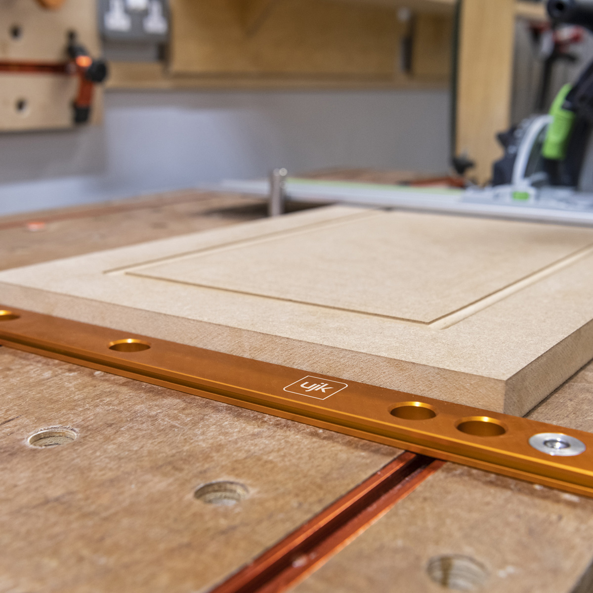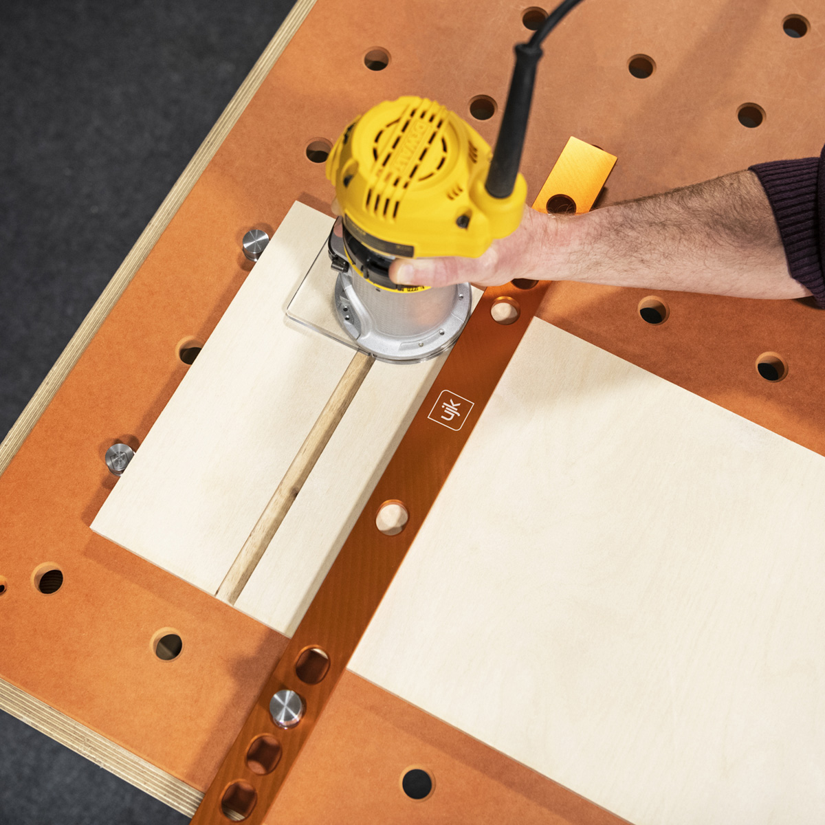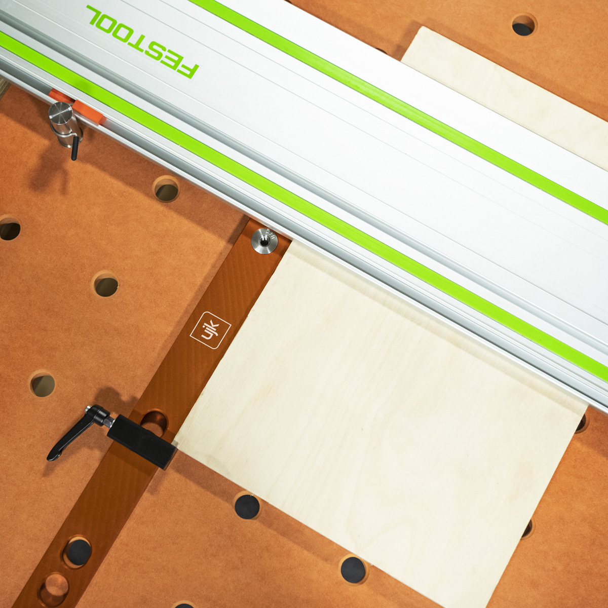 This kit is designed to work with the UJK Parf Guide System, UJK multifunction worktops, and MFT benches, for cutting, marking, drilling, or assembling.