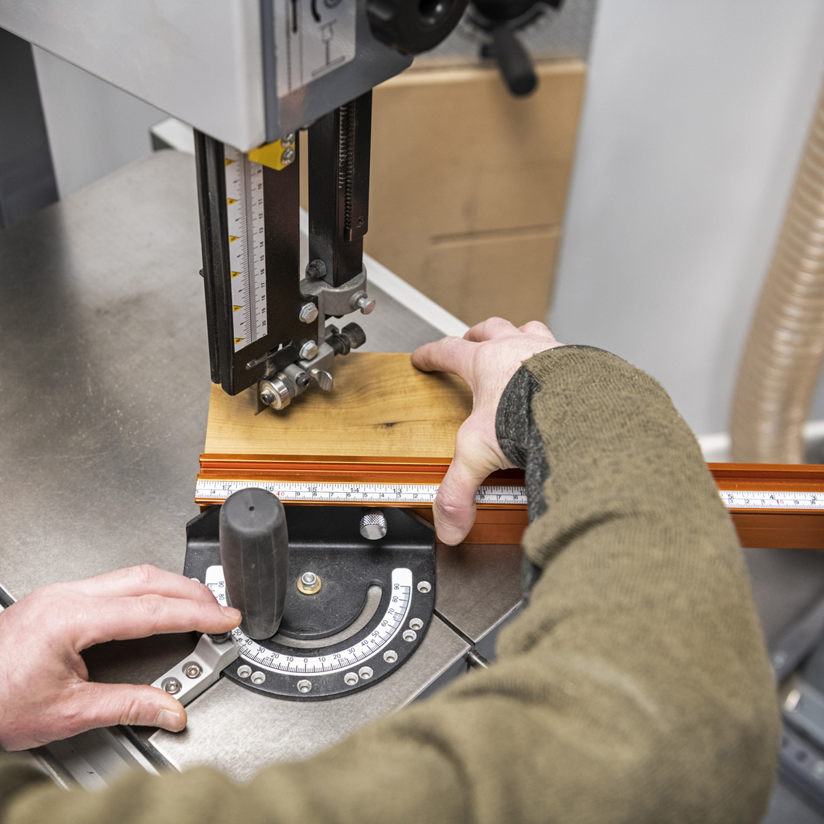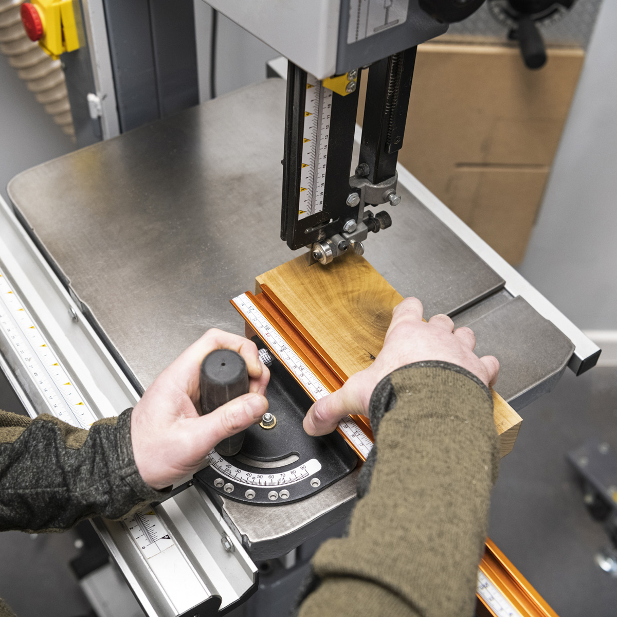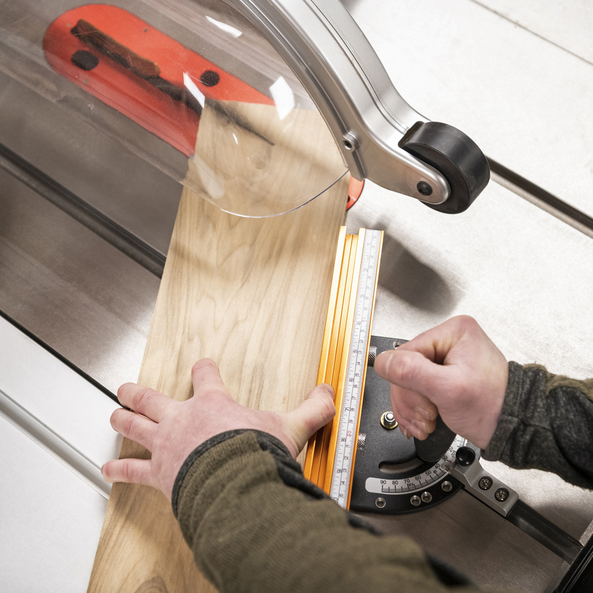 This robust mitre gauge system, features versatile positive stops at key angles, ensuring you can cut with confidence every time. The anodised aluminium fence rail, paired with an adjustable flip-over length stop, glides along the gauge body for quick adjustments and repeatable accuracy.