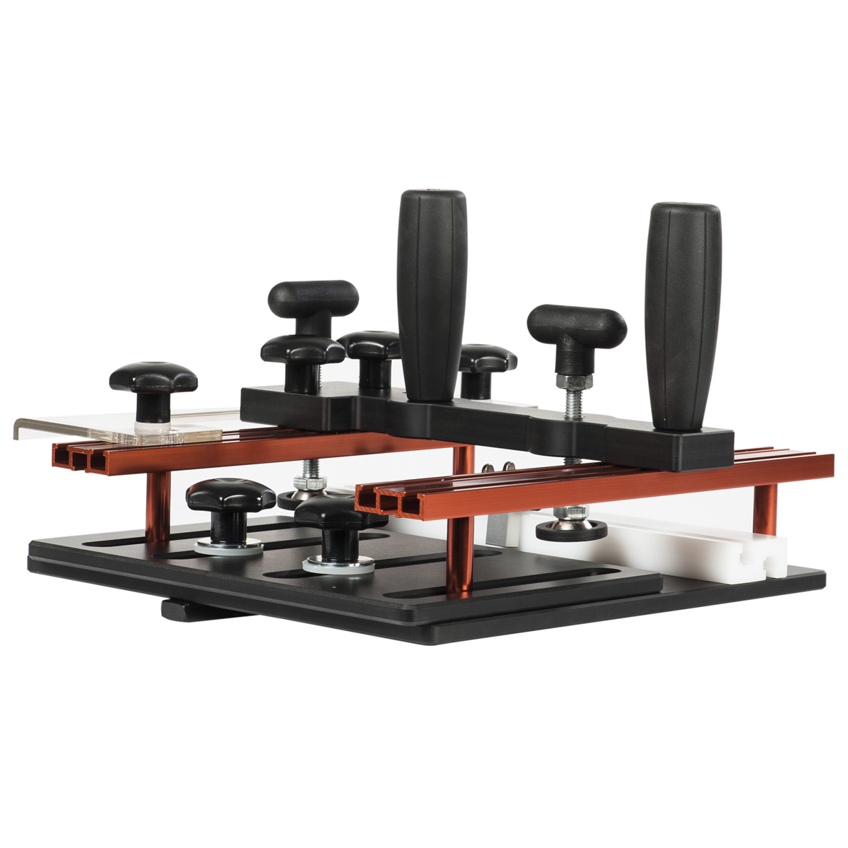The UJK Professional Coping Sled is the woodworker's essential tool for precise and safe coping tasks. Expertly designed to provide a stable platform for accurate cuts, whether you're working on joints, tenons, or intricate end grain cuts. The sled's clear base allows for excellent visibility, while the adjustable clamp gives a secure grip. Constructed from durable materials, it prioritizes your safety by keeping hands clear of the cutters.