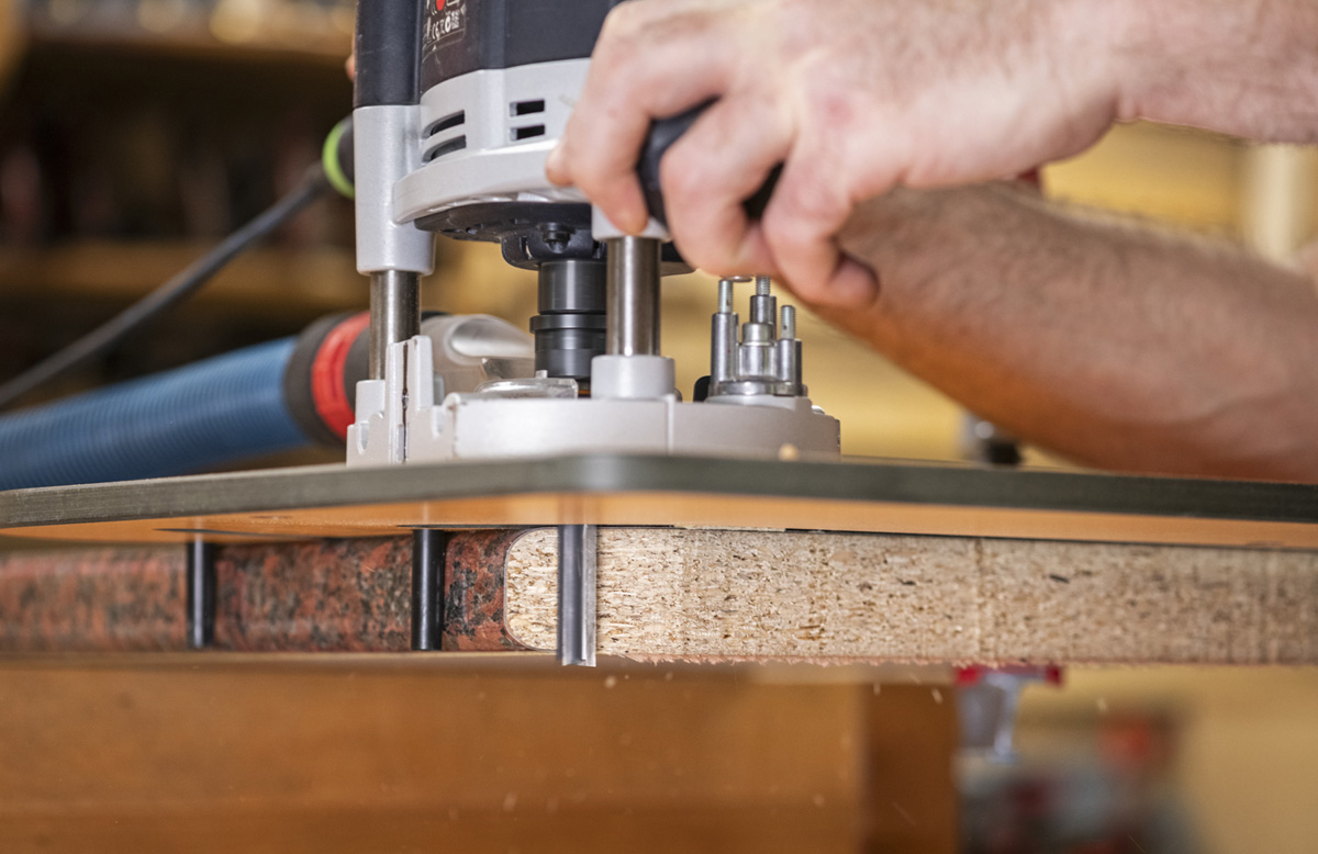 Works seamlessly with natural timbers, hardwood, softwood, and faced material as well as man-made boards, plywood and kitchen worktops