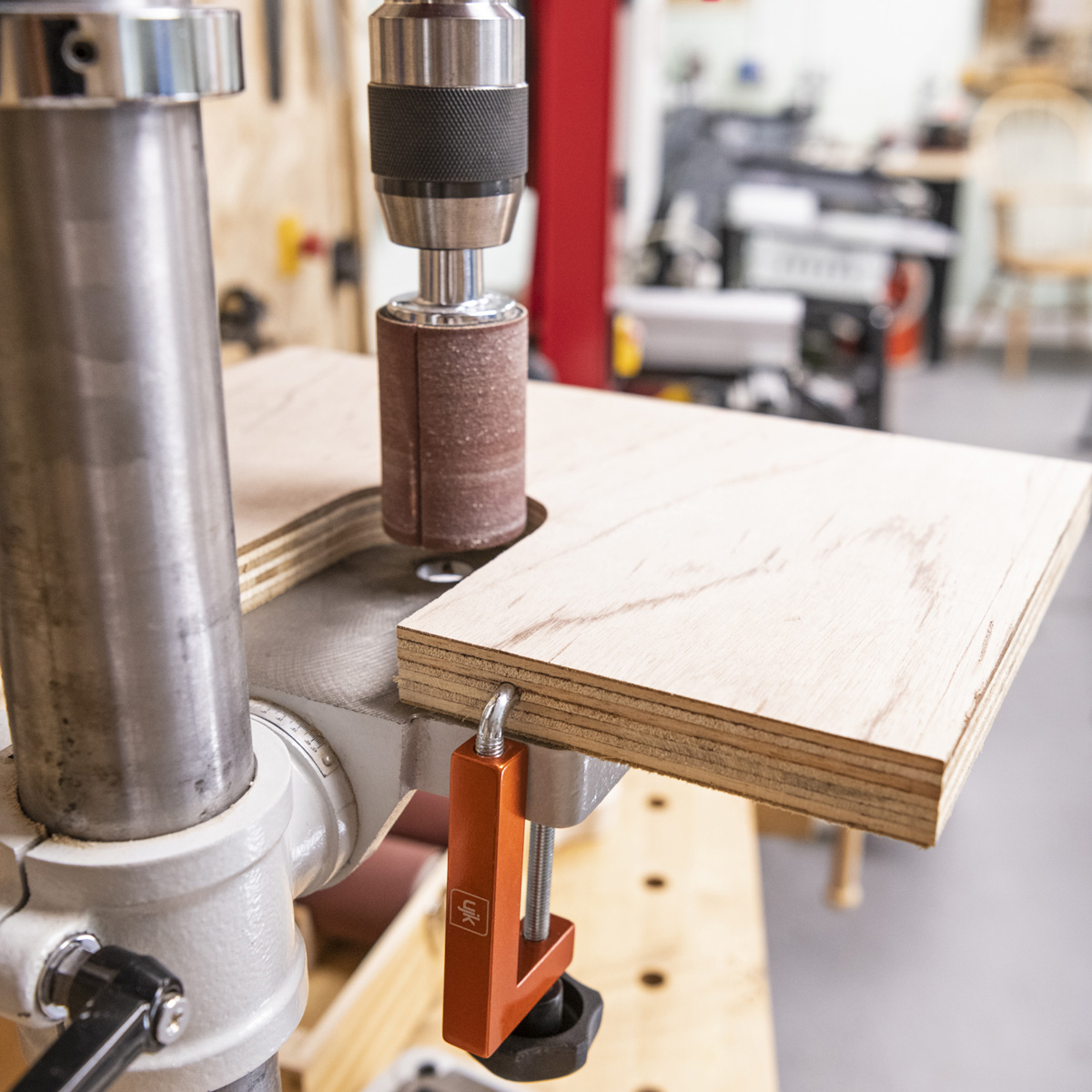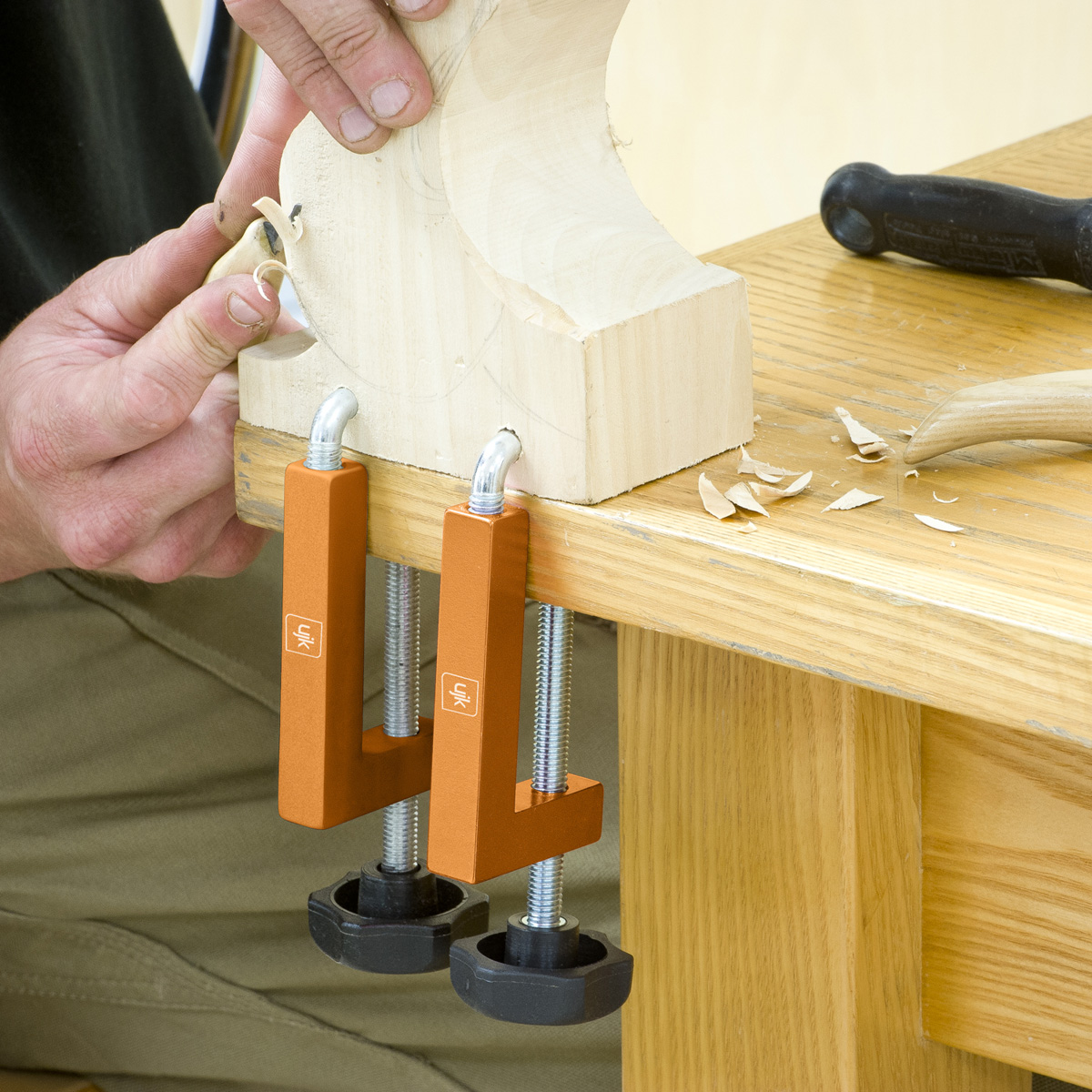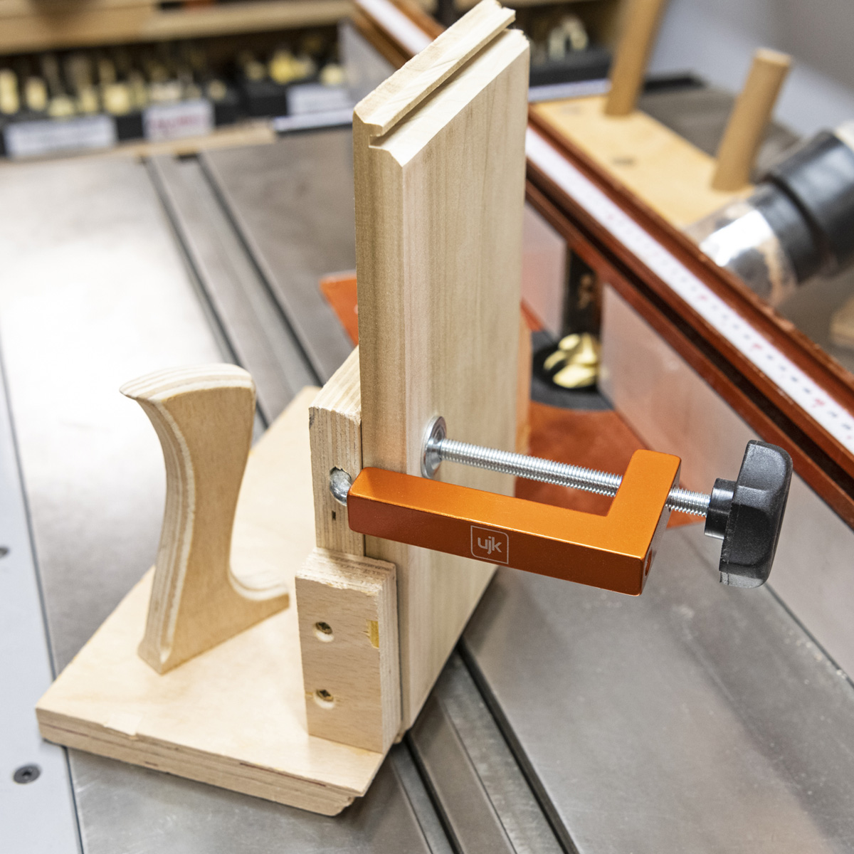 Secure your sub fence with the UJK Universal Fence Clamps. These clever clamps allow you to attach a wooden sub-fence securely, leaving the face obstruction-free, ready for cutting. Simply drill an 8.5mm hole in the fence, and the clamps will hold the sub-fence in place. The 16mm square section anodised aluminium body and 7mm round steel bar ensures durability. The clamping screw is 80mm long. This gives the clamp a maximum capacity of just over 150mm, with a throat depth of 38mm.
